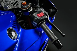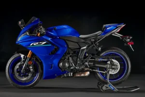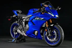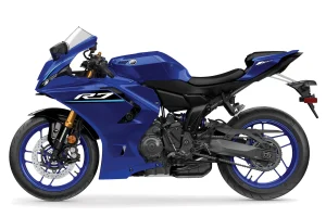 - Yamaha’s latest SpinForged 10-spoke aluminum wheels cut unsprung weight and inertia. The goal is to improve suspension response and cornering precision. Bridgestone Battlax Hypersport S23 high-performance tires are now mounted on the R7, an upgrade from last year’s S22s.