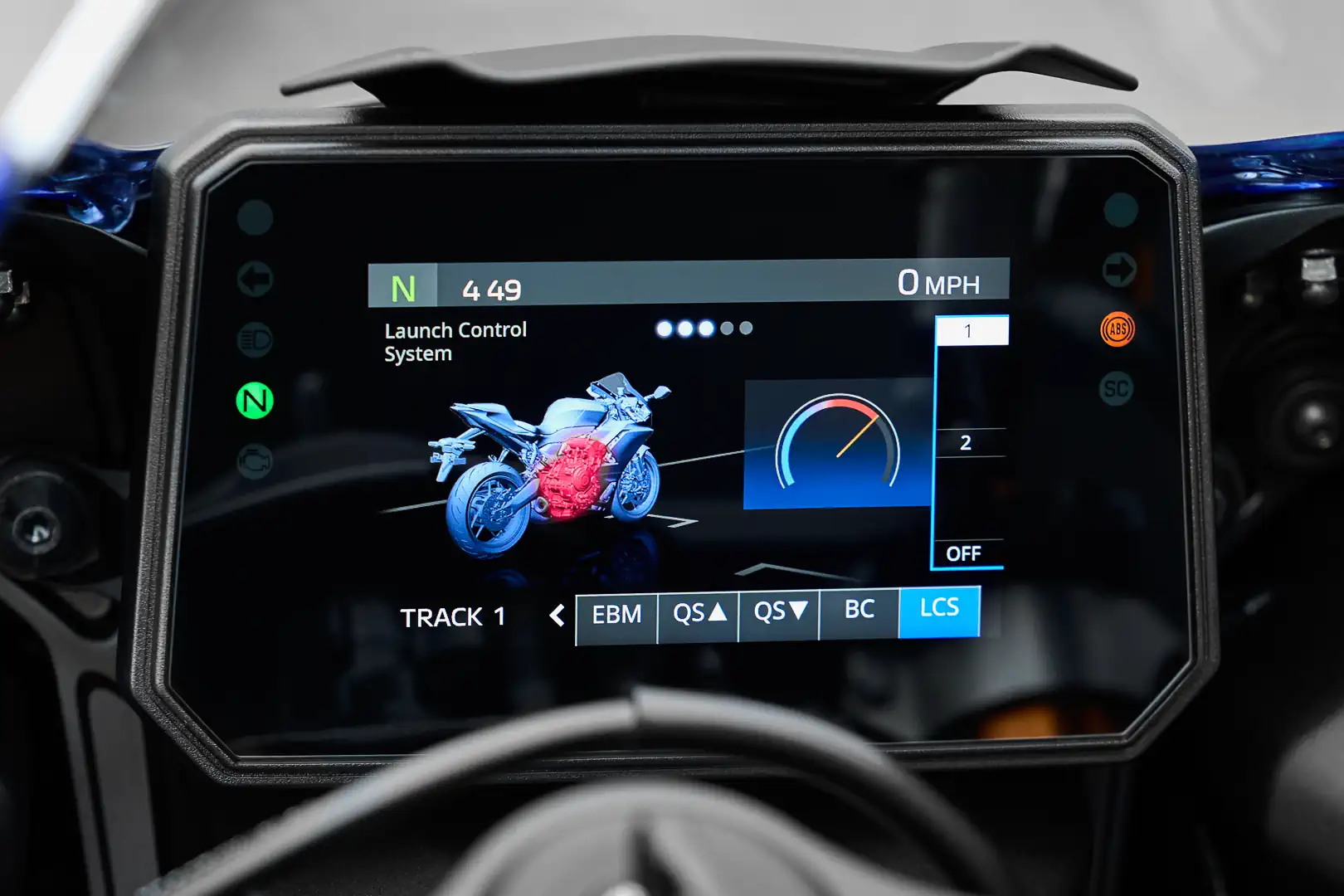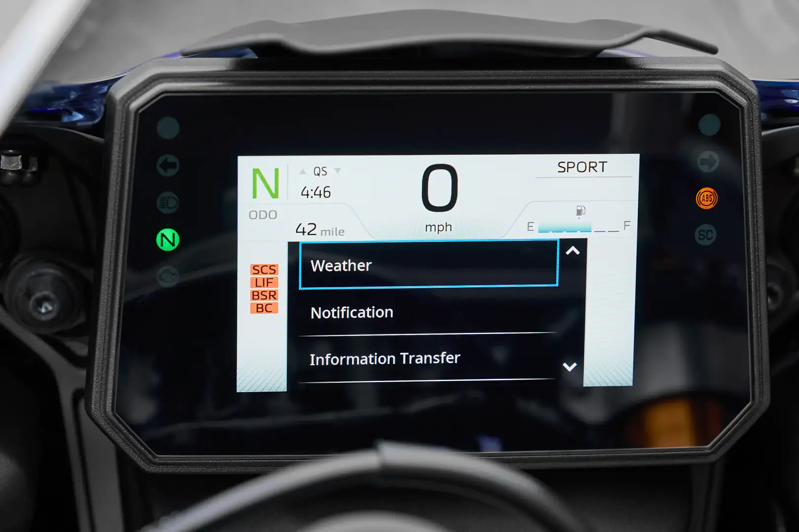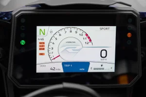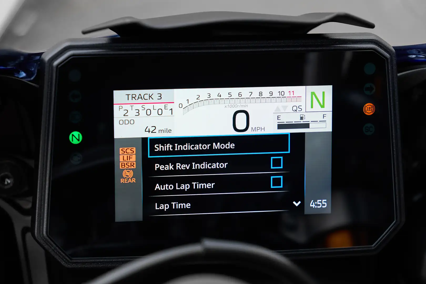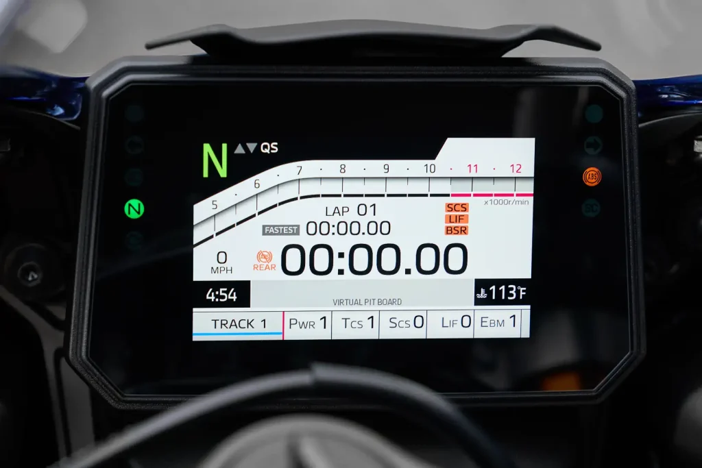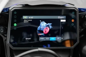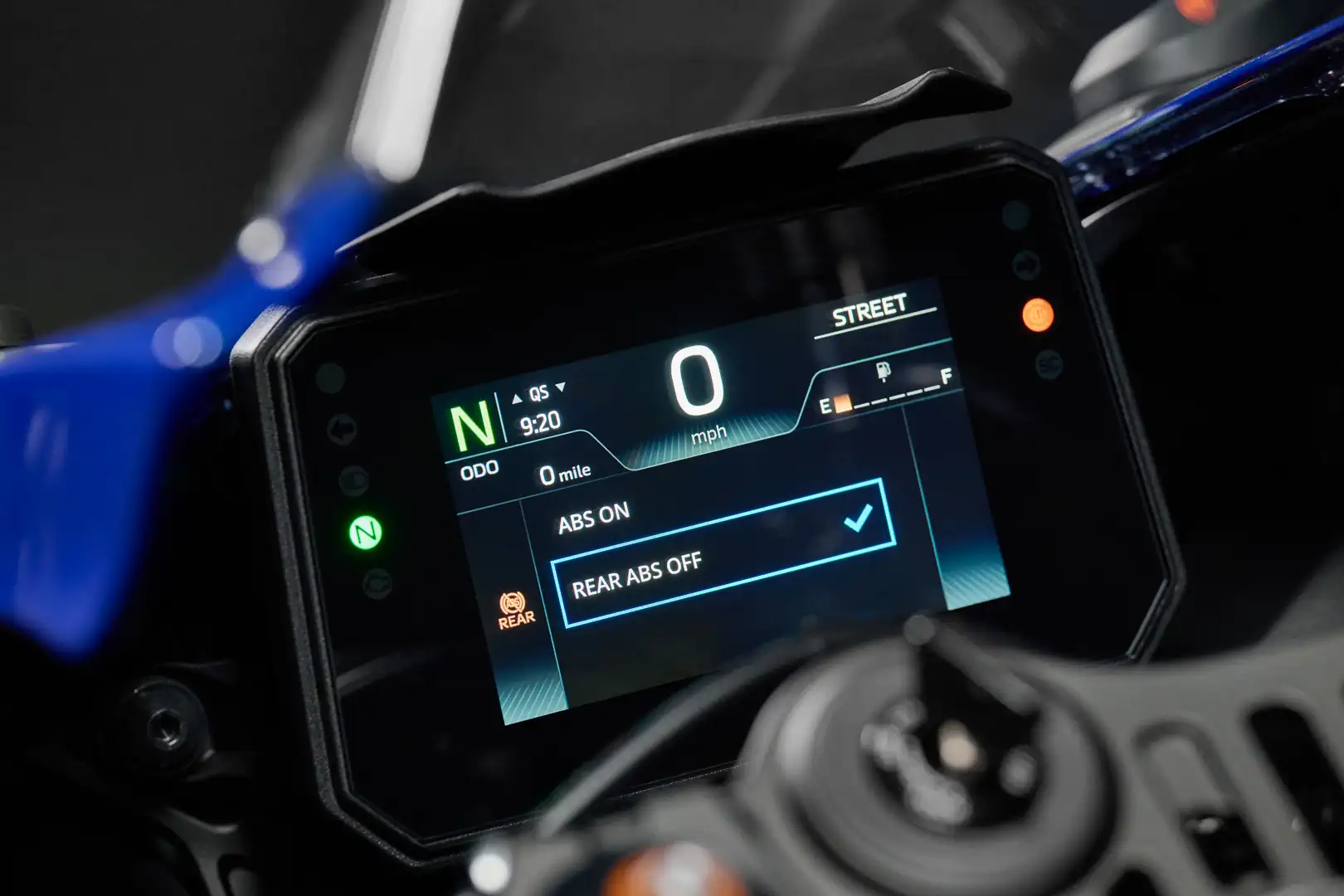 - A five-inch full-color TFT dash offers four themes, plus a track mode. The Yamaha Y-Connect app pairs with the rider’s smartphone and intercom for calls, texts, and music via Bluetooth. Full Garmin StreetCross turn-by-turn navigation is part of the package.