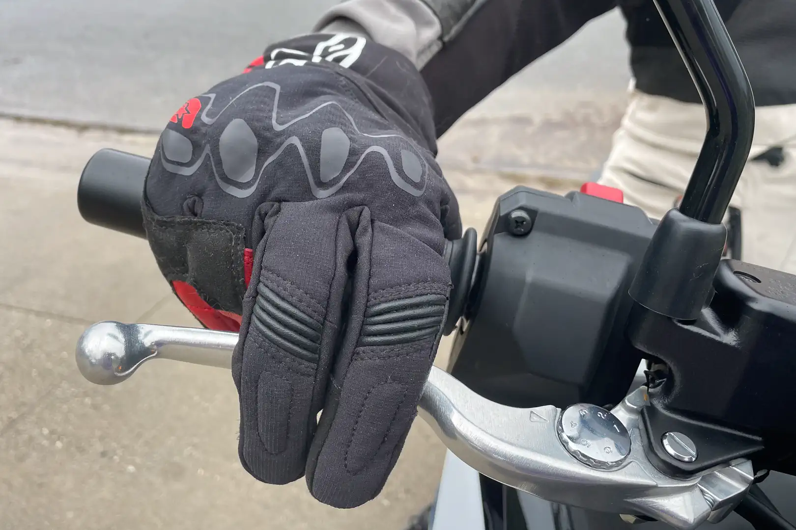 There’s plenty of flex in the gloves, with stretch panels on the index and middle fingers, allowing for easy use of the hand levers. A chevron-shaped stretch panel across the back of the hand makes use of the throttle easy. I wear Large size gloves, and the Hyde gloves fit as expected.