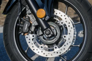 - Front brake: 296mm discs w/ Nissin two-piston calipers