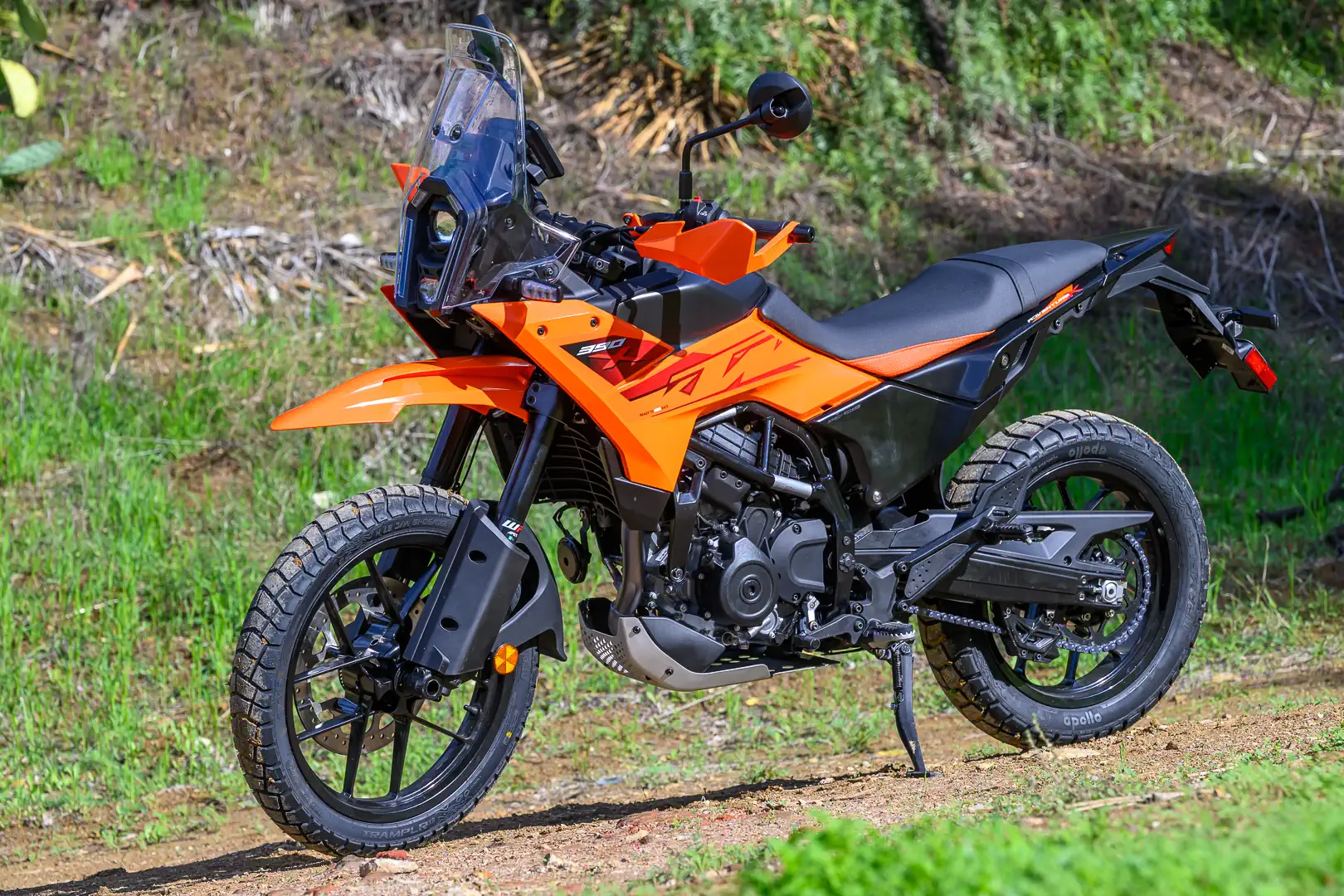- The Indian-made Apollo Tramplr XR adventure tires provide convincing grip for spirited riding, thanks to their 70/30 street/dirt tread ratio. Even with mud on them, I was impressed by how far I could lean them over, with the edge grip providing plenty of confidence. While I would replace them with 90/10 rubber when the time comes if I were riding almost exclusively on the pavement, these tires won’t rush the process.