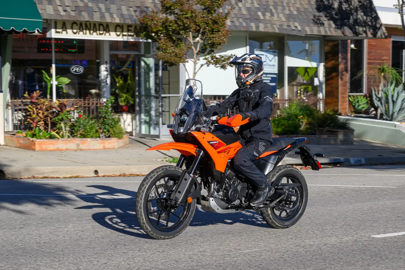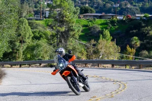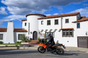 - Adventure ergonomics are perfect for exploring pocket neighborhoods in the hills of Los Angeles. The upright seating and wide handlebar make it easy to control the bike at walking speeds as you traverse tight turns, or take evasive action when an Amazon delivery van unexpectedly backs out of a hidden driveway. The 390’s undemanding personality at low rpm has your back with its predictable, calm throttle response.