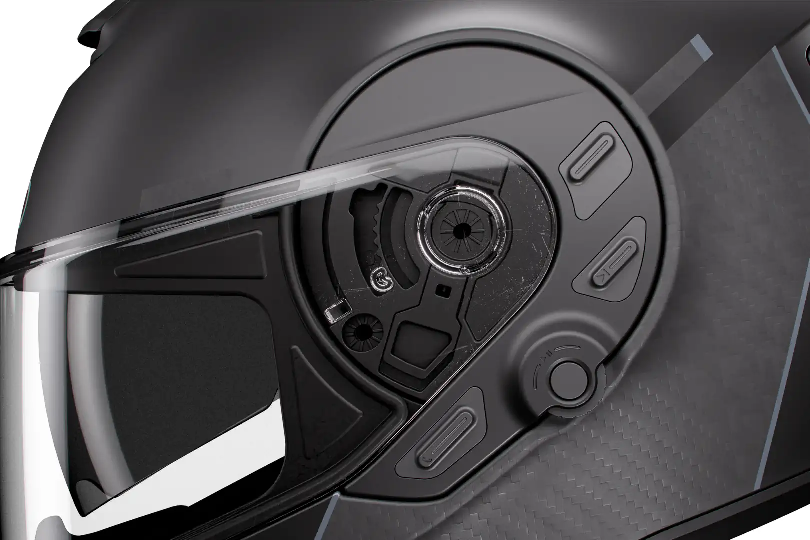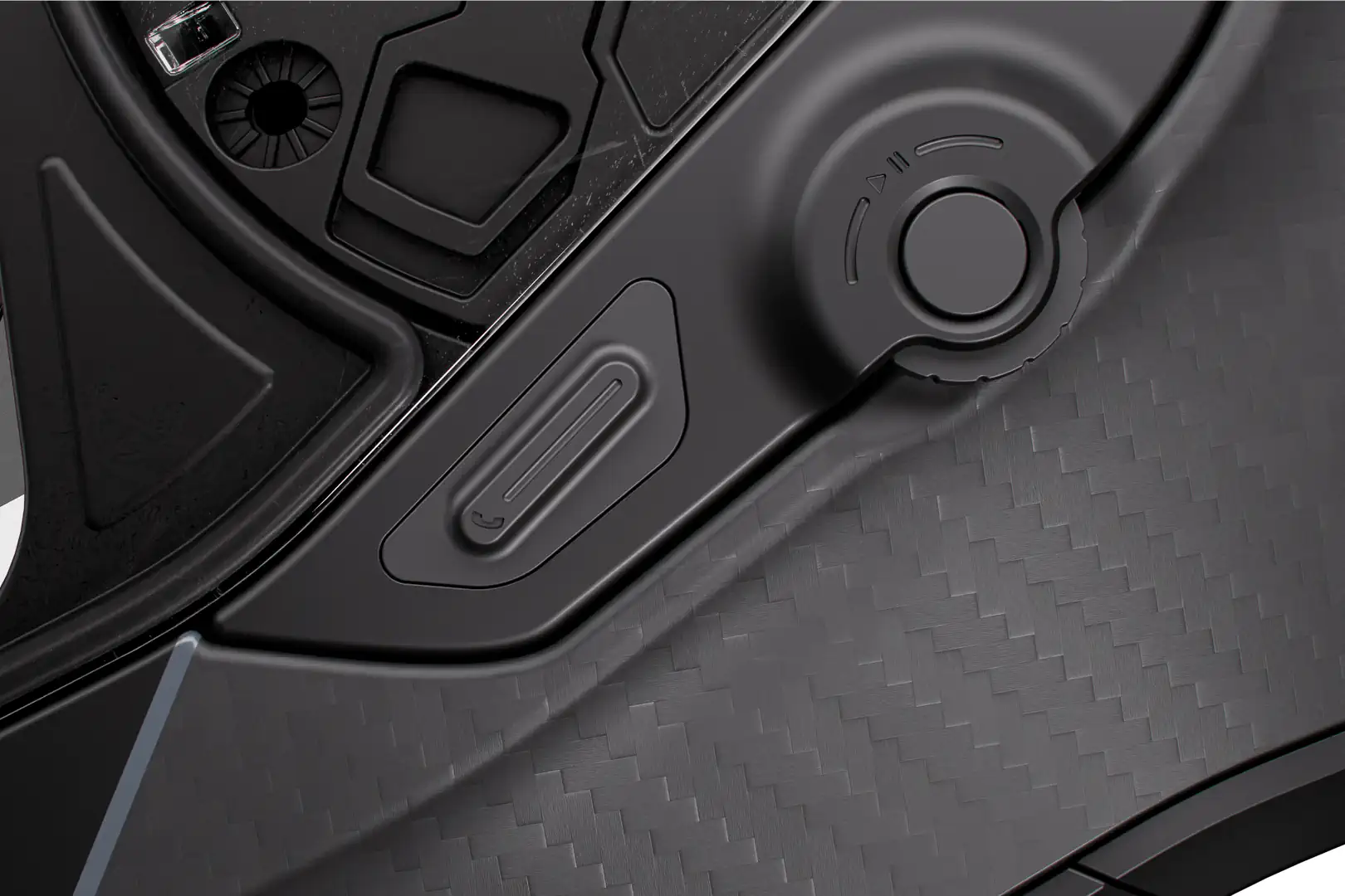 - The shell of the Cardo Beyond GTS is carbon fiber. Inside, there’s a multi-density EPS liner.