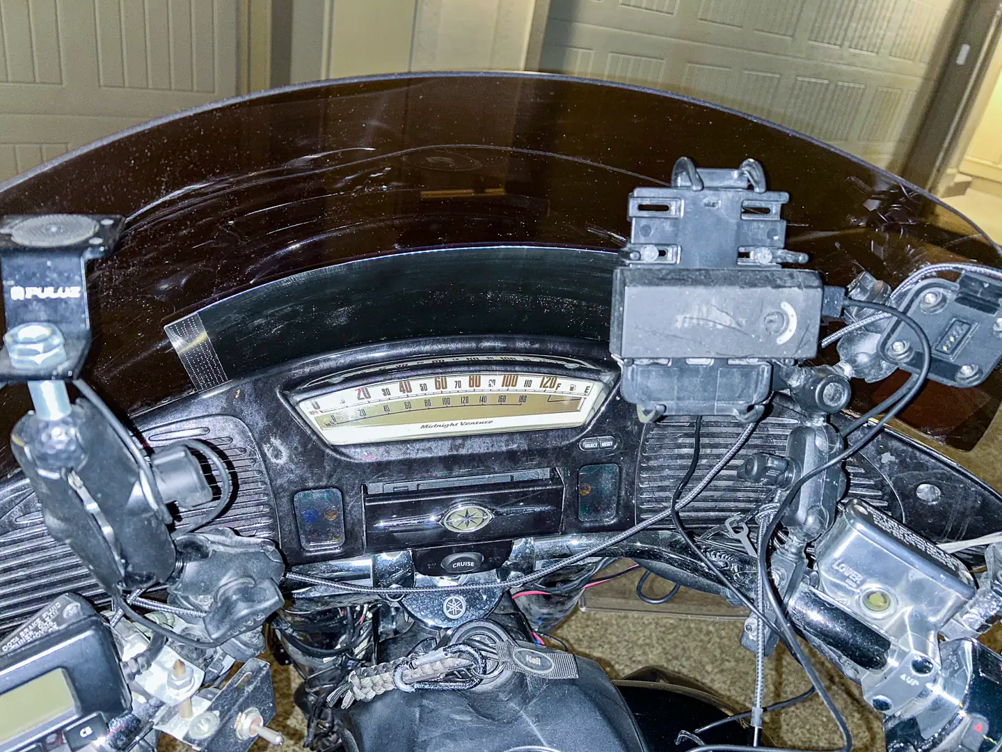 I don’t want to keep my bike’s USB port active on Accessory when parked, so I plug the Moto Eyes into a cell phone charging brick sitting in my phone mount and run a short USB-A-to-USB-C cable between the Moto Eyes and the charging brick.