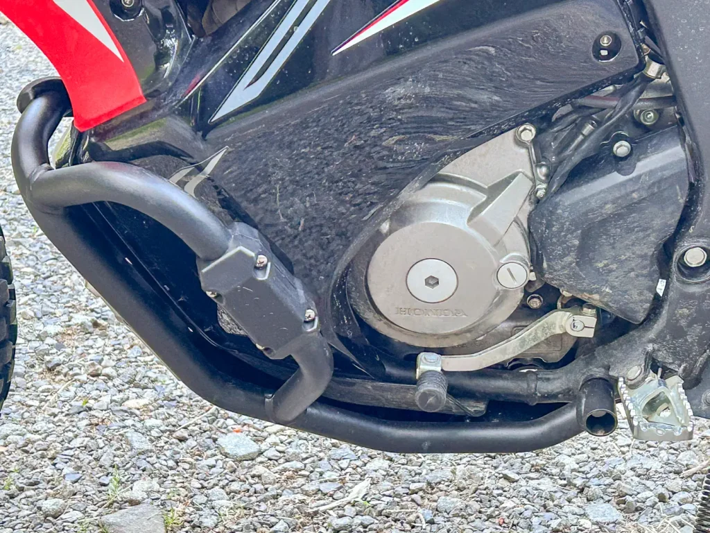 Protection always comes with trade-offs, and on a small-displacement adventure bike like the CRF300L Rally, weight is a genuine concern. Every extra protective part adds weight to haul around and places additional strain on the OEM suspension.