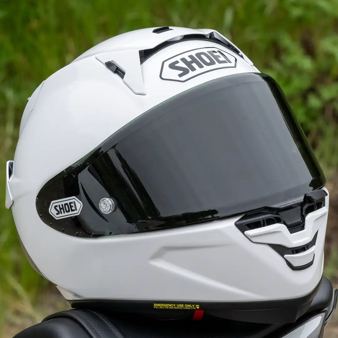 The optically correct shield uses small vortex generators molded into the shield’s sides help manage airflow around the face shield area, contributing to reduced wind noise and improved aerodynamic stability. Shoei reworked the eyeport shape to provide an additional 5mm of upper field of view without altering the helmet’s fit. In practical terms, that gives riders a better view of corner exits and braking markers when they’re assuming an aggressive riding position.
