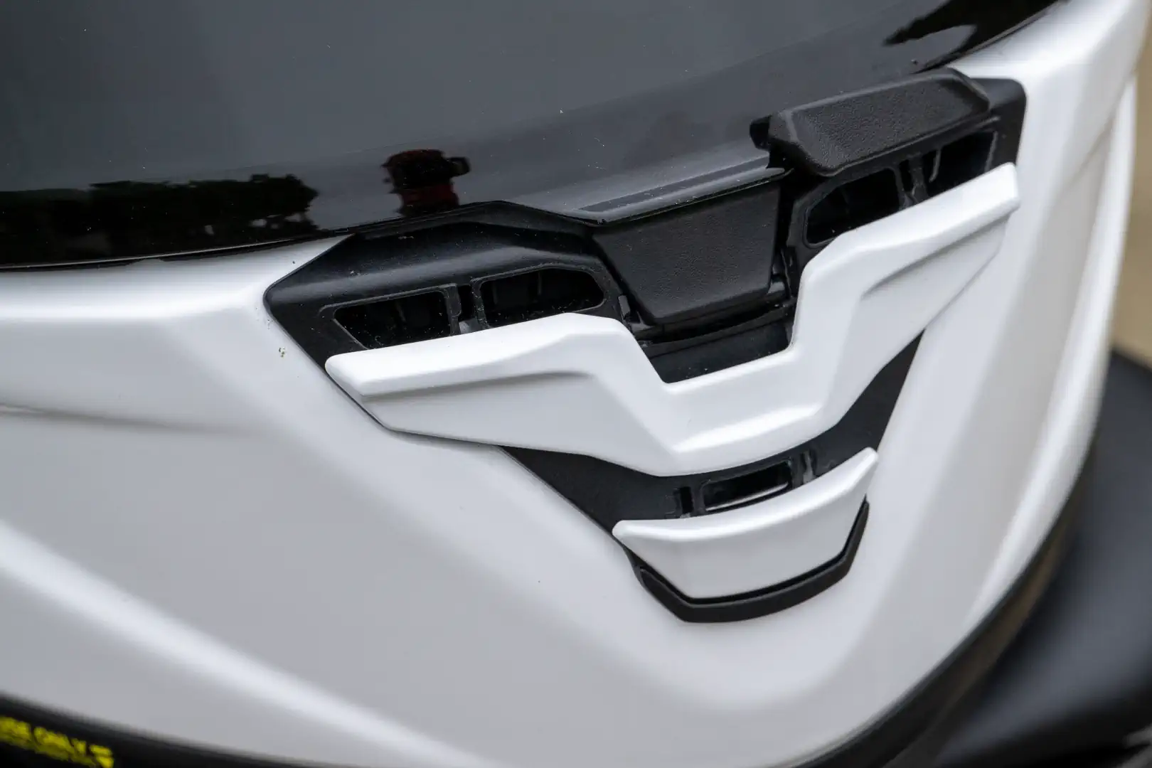 Peeking at the top of the shell reveals more defined edges along the upper lateral areas, said to guide airflow cleanly off the helmet rather than allowing it to tumble and create turbulence. Engineers reshaped the lower third of the lid, using a narrower profile from the chinbar to the revised rear stabilizer and flap to encourage greater stability, which it does.