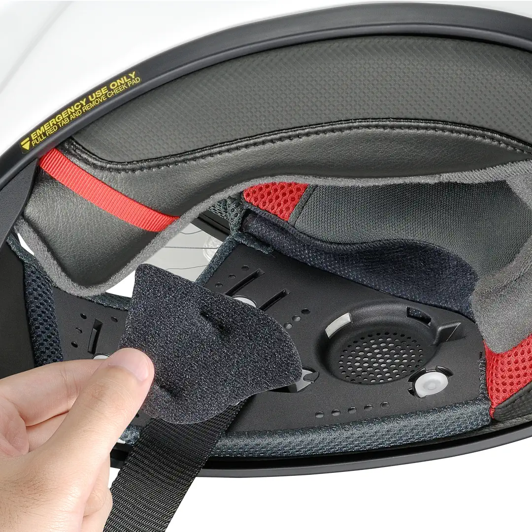Nearly all padding can be swapped out for optional thicknesses, allowing riders to personalize crown, front, rear, or side fitment. In addition, each section features peel-away layers, enabling fine adjustments without purchasing separate pads. This modularity is especially valuable for riders who need a precise, secure fit over long stints.