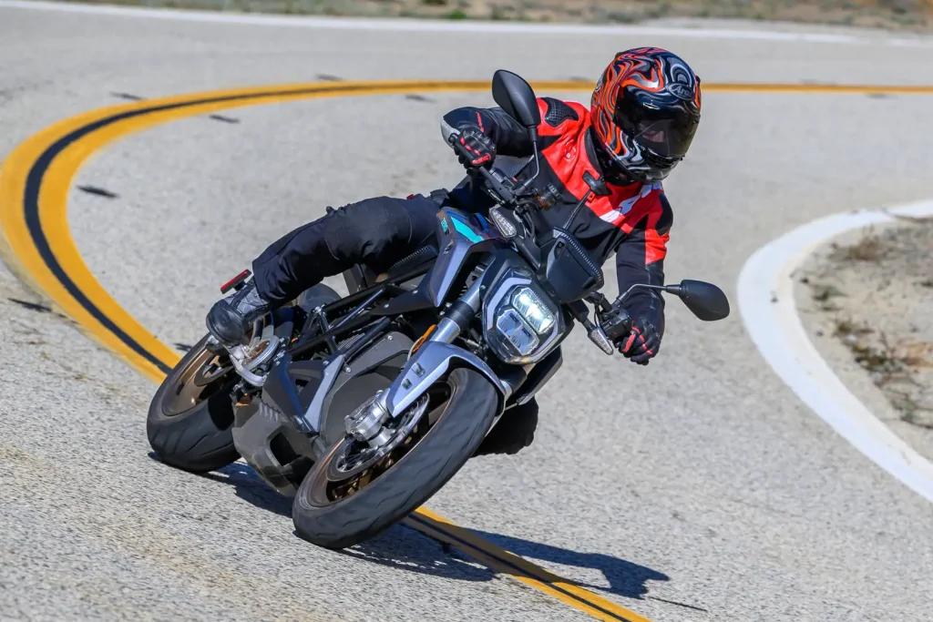 The S’s weight becomes quite apparent in multiple ways. Initiating a turn requires some muscle, despite the steep 24.5-degree rake and the sport-inspired Pirelli Diablo Rosso III rubber. Once the effort is put in, the S’s momentum is difficult to manage. Just as it’s hard to initiate the lean, it also requires work to stop it. The bigger and stronger you are, the less this will bother you, though it still is a challenge to stop the leaning once it starts. Exiting the corners is less of a problem, as the 97 lb-ft of torque is happy to stand the Zero S up.