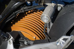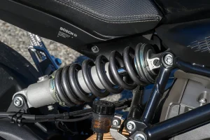 - Front suspension: Fully adjustable inverted 43mm Showa Big Piston Separate Function fork; 4.7 inches