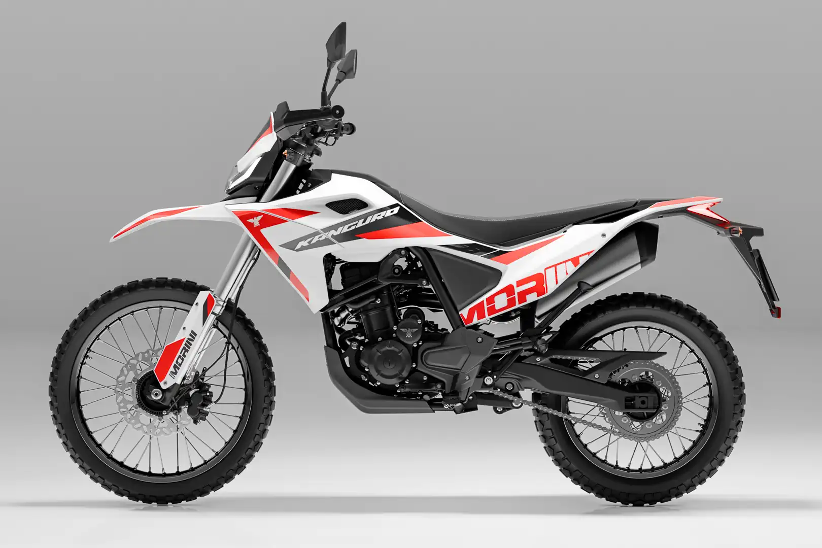 - The 21-/18-inch wheelset is pure dual-sport. Wire-spoke wheels on the Kanguro also tilt the bike toward dual-sport rather than adventure. Moto Morini has not confirmed a tire choice.