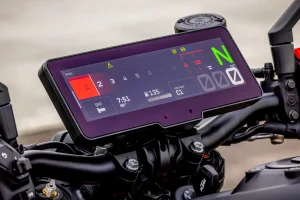 - If you demand total electronic adjustment, you’ll need the all-encompassing $899 Tech Pack. If you want to use the awesome paddle switches to adjust TC, WC (it can be programmed for either), swap between four ABS modes, or start disabling things for hooligan work, you’ll need the Tech Pack. Said package includes the Track Pack, quickshifter, Motor Slip Regulation, and cruise control. The preset options can suffice for road work, while track day junkies will want to reduce or disable nannies, as the engine’s tractability doesn’t entirely necessitate WC. With all this baked into the bike, the 2026 KTM 990 Duke R’s real-life MSRP rises to $14,298 all in. That’s $697 cheaper than the base model Ducati Streetfighter V2 S, $753 more expensive than the Triumph Street Triple 765 RS, and a $1,599 premium over the Yamaha MT-09 SP.