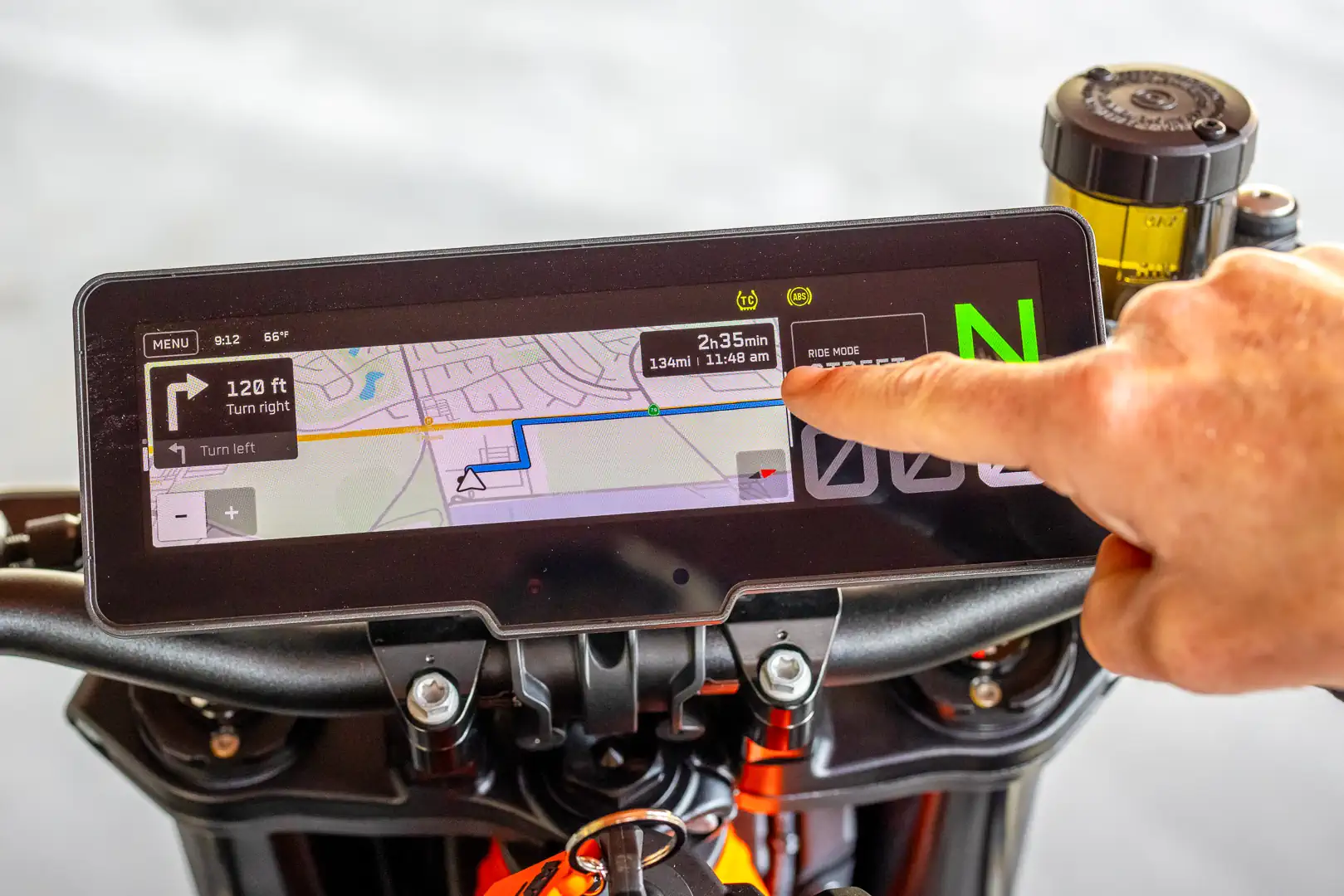 - The nine-inch TFT touchscreen display is raising the bar among class peers. Bright, clear, and with more menu customization than you can shake a stick at — that sums it up. If swiping and switching between split-screen layouts by hand doesn’t tickle your fancy, the new joystick-style switchgear aids navigation. It has a slick UI, though the most notable feature is a stand-alone navigation system that doesn’t rely on mobile device pairing with the usual awful, and I do mean awful, proprietary apps all too common in the two-wheeled market. A user can enable live traffic updates, along with the usual laundry list of features, by pairing a smartphone via Bluetooth.