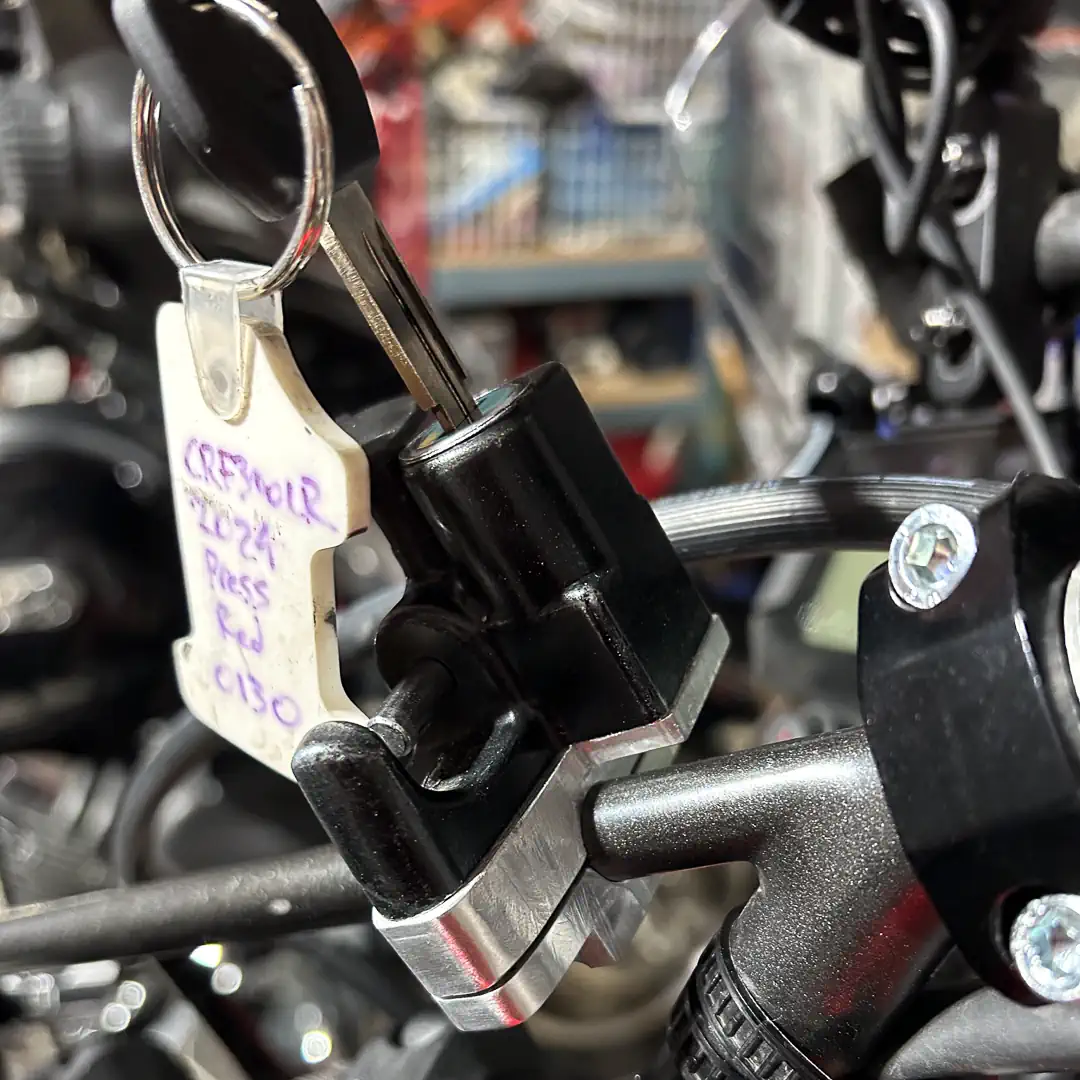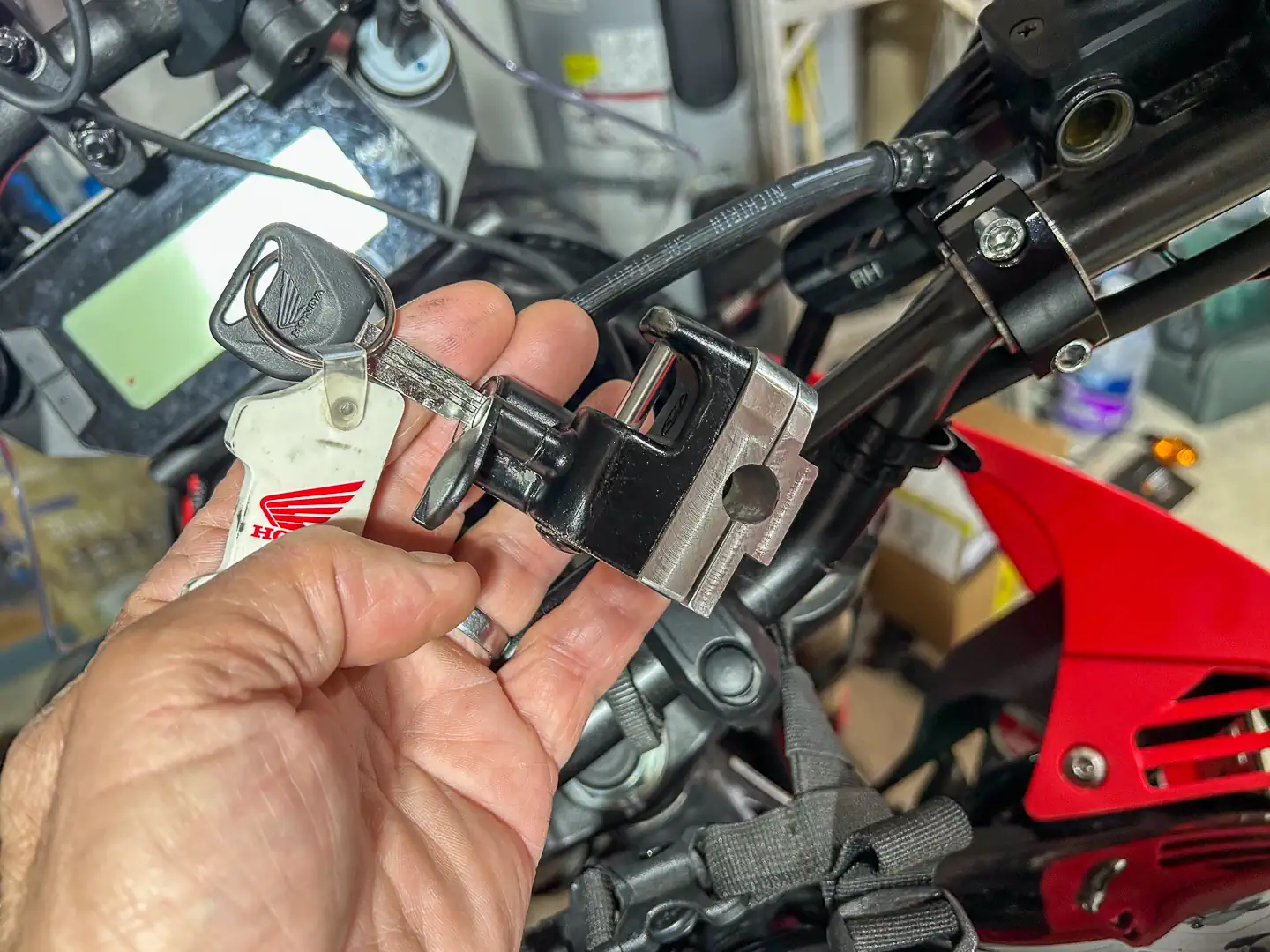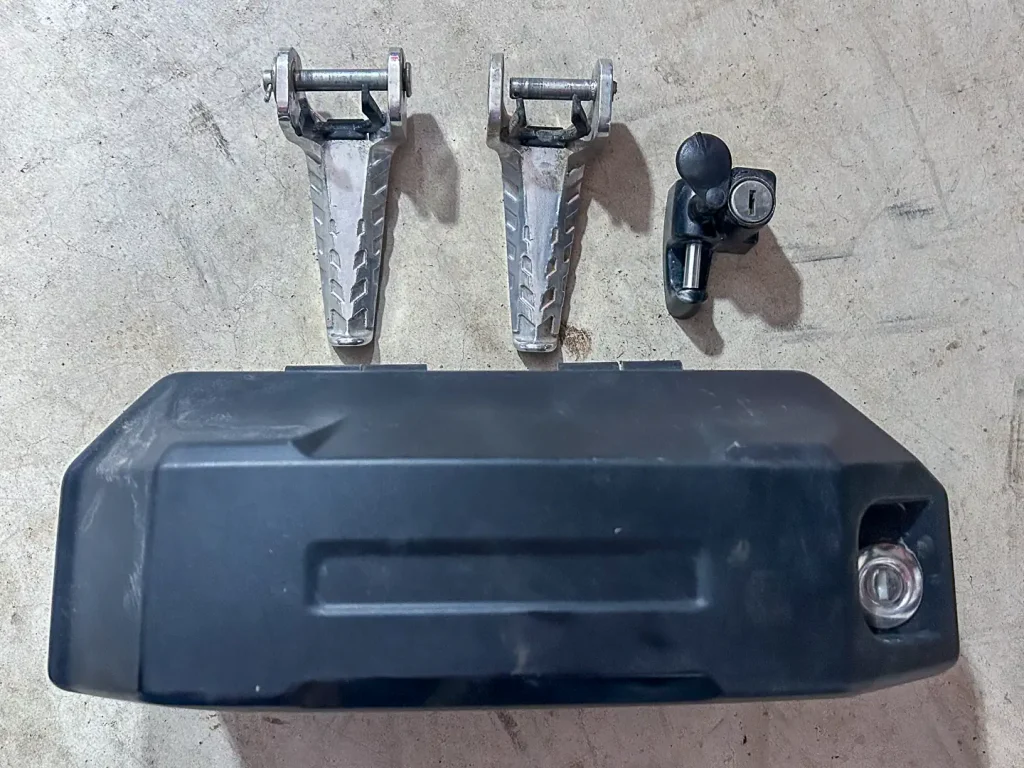 Start by removing the helmet lock, toolbox, and passenger footpegs. With my machinist neighbor’s help, I was able to relocate the keyed helmet lock to the handlebars. The rest of the process, all of which is clearly demonstrated in Camel ADV’s 47-minute installation video, is easy to follow.