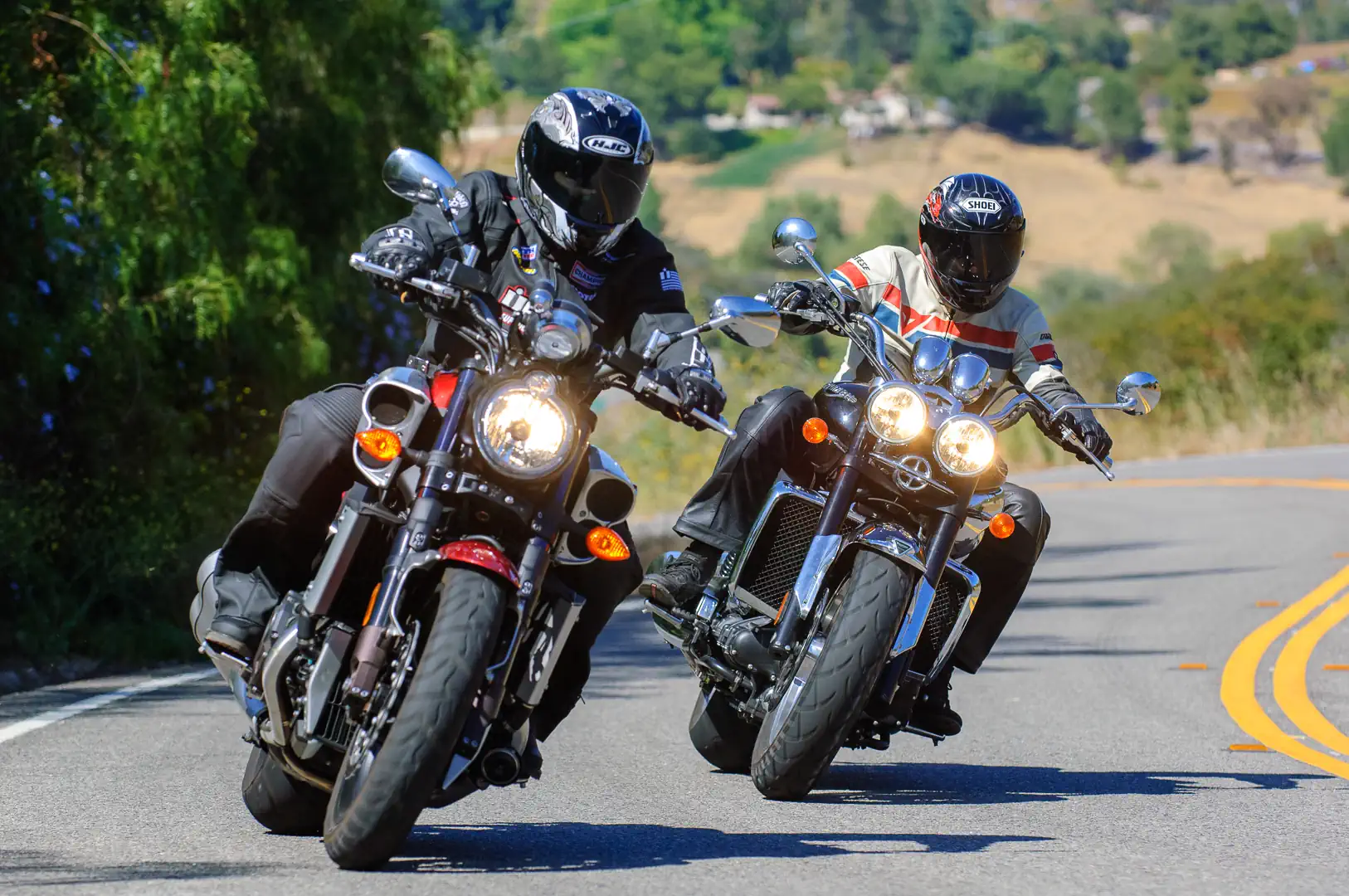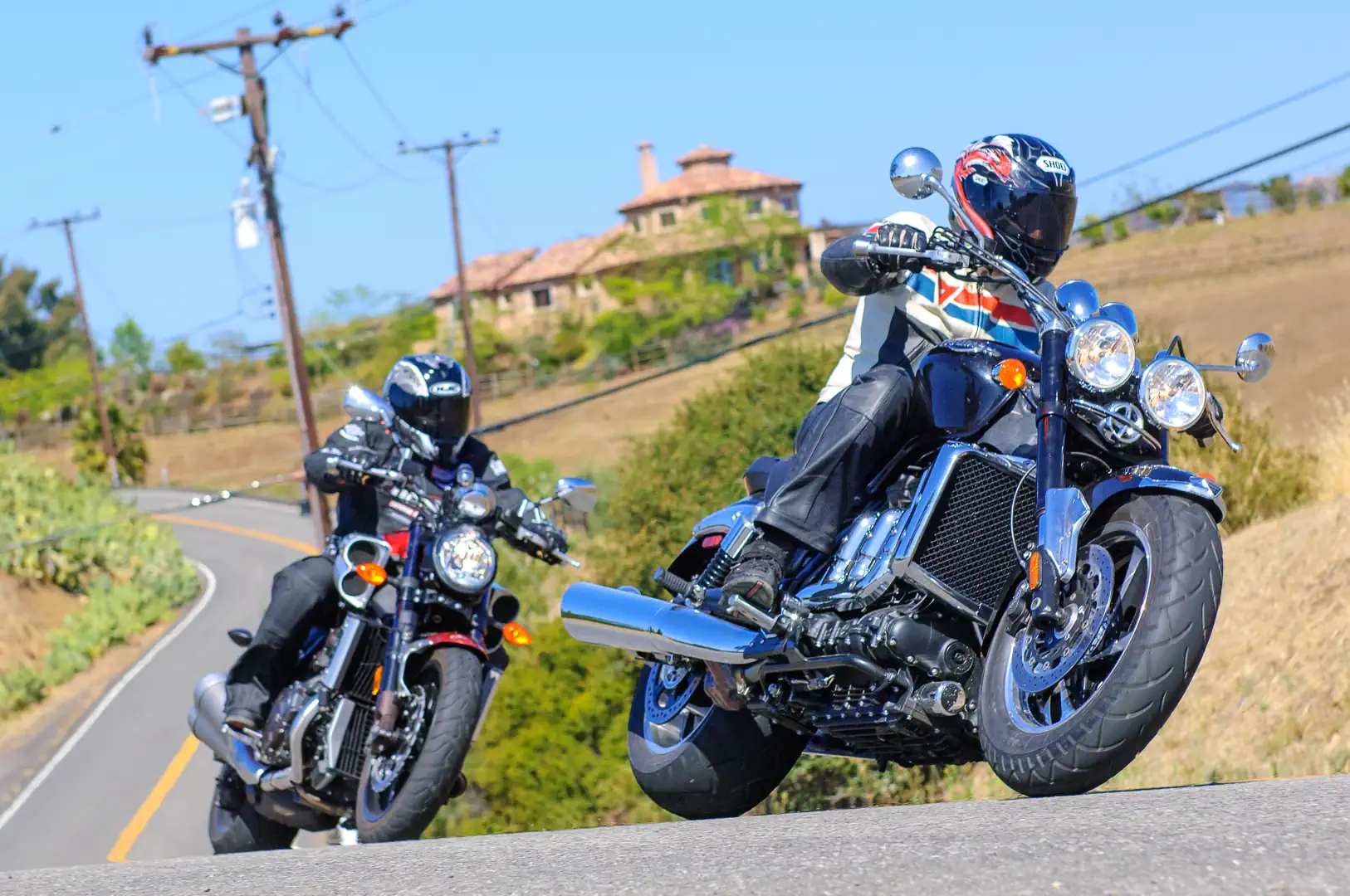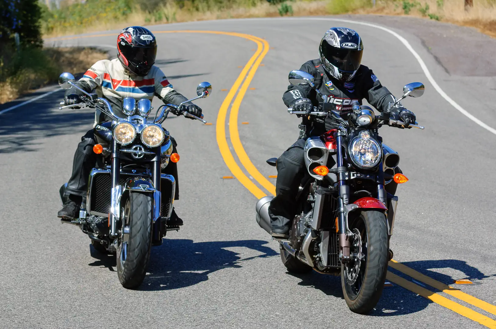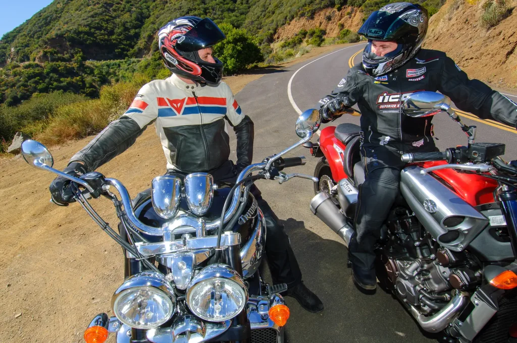 Editor’s Note: We were digging through our archives and realized that this 2010 Star VMax vs. Triumph Rocket III Roadster comparison had never made it to the website. We hope you enjoy this Battle of the Titans as much as we did. Coram Publishing President Arthur Coldwells and Associate Editor Jess McKinley took care of the words, while Editor Don Williams took the photos of the beasts (men and machines).