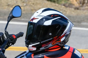 Interestingly, our medium-sized DOT/ECE/FIM-certified R10 weighs 3 pounds, 5 ounces due to its more pronounced aerodynamic elements and elongated overall shape. Meanwhile, our medium DOT/ECE-approved Supertech R7 weighs 3 pounds, 1 ounce. With the $550 accessory Alpinestars A-Connect communication device installed, we’re looking at 3 pounds, 4 ounces.