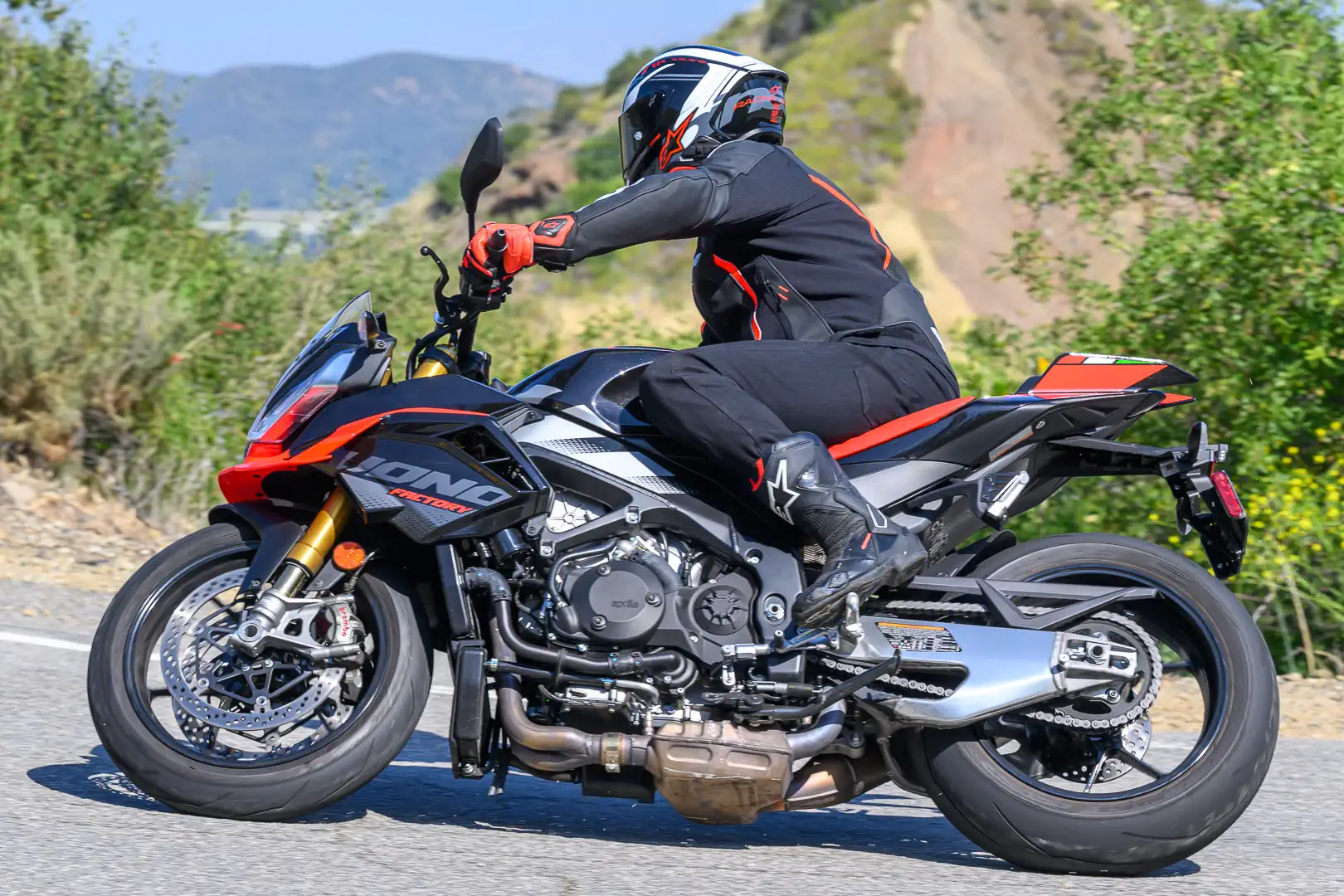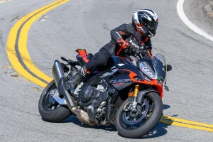 The race-proven Supertech R10 laid the foundation for the Supertech R7, repurposing its genuine MotoGP-earned development for a sport-minded street rider. Slippery aerodynamics contribute to the S-R7’s inherent stability, while it takes comfort up a notch over the race-focused R10. At Streets of Willow and on California backroads, it performed without complaint.