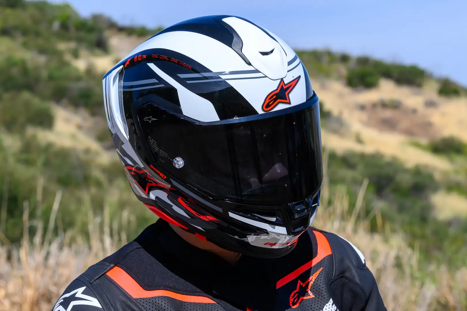 A-Head is a patented Alpinestars system consisting of a micro-adjustable pad connected directly to the inner EPS liner. It adjusts on two axes: the height at which the helmet sits on your head and the angle (forward-backward tilt), allowing owners to take full advantage of the massive eyeport, which features cutouts in your peripheral vision for improved visibility. Setting the helmet to its steepest angle is handy at the racetrack when tucked in on conventional sportbikes. On the street, resetting it to a more neutral angle improves sightlines when sitting more upright. It takes less than a minute to adjust and can make a tangible difference by potentially relieving neck stress and improving vision.