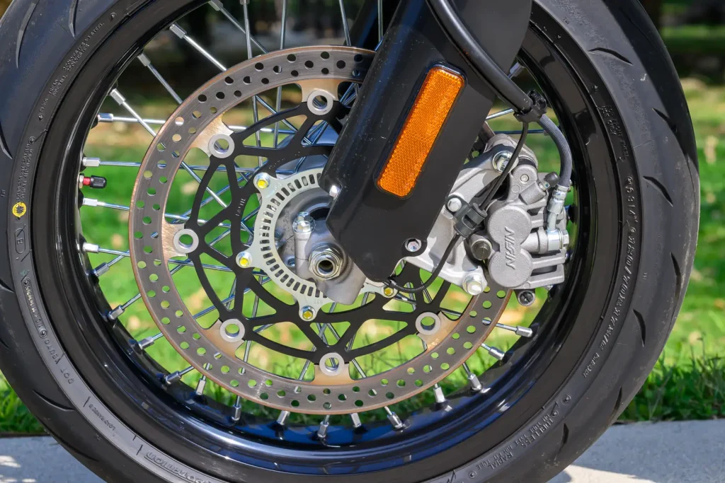 - Front brake: 310mm disc w/ Nissin two-piston caliper
